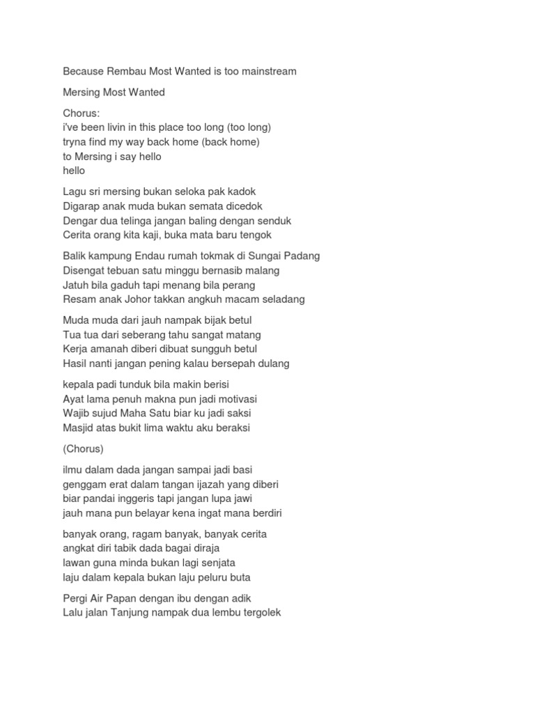 Because Rembau Most Wanted Is Too Mainstream Mersing Most Wanted Chorus